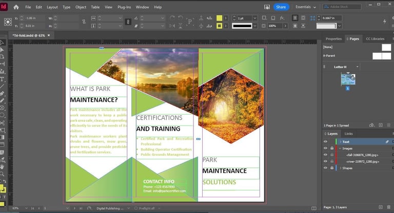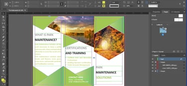 This trifold brochure is a piece of marketing that lets the customer know what offerings are provided by the parks and recreations organization.